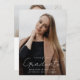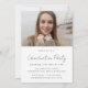Announce your graduate's milestone in style with our personalised photo graduation party invitation! The front showcases a vertical photo of the graduate, adorned with "Graduate" in a chic handwritten white script overlay. Customise the front of the invite with your graduate's name, graduation year, and school name for a personal touch. Flip to the back to reveal another senior photo and all the party details below. Perfect for high school or college celebrations, this invitation sets the tone for a memorable event. Create lasting memories and invite your loved ones to join in the festivities with our photo graduation party invitation!