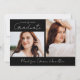 Announce your graduate's achievements and plans with this stylish, modern photo graduation announcement. The front of the announcement displays 2 photos - 1 horizontal and 1 vertical photo. "Graduate" is displayed in a trendy, handwritten white script with a black background. Personalise the black and white graduation announcement with the year and the graduate's name. The announcement reverses to display an additional photo with your custom text in white lettering. This 3 photo graduation announcement is perfect for high school or college graduations.