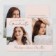 Announce your graduate's achievements and plans with this stylish, modern photo graduation announcement. The front of the announcement displays 2 photos - 1 horizontal and 1 vertical photo. "Graduate" is displayed in a trendy, handwritten black script with a blush pink background. Personalise the blush pink graduation announcement with the year and the graduate's name. The announcement reverses to display an additional photo with your custom text in black lettering. This 3 photo graduation announcement is perfect for high school or college graduations.