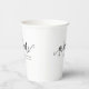 A modern handwritten script graduation party paper cup. This paper cup features a simple black and white theme with an elegant font. Add the graduates name and high school or college for the perfect personalised graduation party cup.