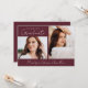 Announce your graduate's milestone in style with our personalised photo graduation party invitation! The front showcases 2 photos of the graduate, adorned with "Graduate" in a chic handwritten white script with a maroon background. Customise the front of the invite with your graduate's name and graduation year. The 2 photo graduation party invitation reverses to display your graduation party details. Perfect for high school or college celebrations, this invitation sets the tone for a memorable event. Create lasting memories and invite your loved ones to join in the festivities with our photo graduation party invitation!