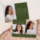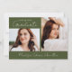 Announce your graduate's achievements and plans with this stylish, modern photo graduation announcement. The front of the announcement displays 2 photos - 1 horizontal and 1 vertical photo. "Graduate" is displayed in a trendy, handwritten white script with an olive green background. Personalise the olive green graduation announcement with the year and the graduate's name. The announcement reverses to display an additional photo with your custom text in white lettering. This 3 photo graduation announcement is perfect for high school or college graduations.