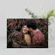 A modern save the date card designed to accommodate your favourite horizontal or landscape orientated full-bleed engagement photo. "Save the Date" appears near the bottom of your photo in gold foil handwritten script lettering, with your names, wedding date and location beneath. Personalise the back with additional details, such as your wedding website.