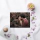 A modern save the date postcard designed to accommodate your favourite horizontal or landscape orientated full-bleed engagement photo. "Save the Date" appears near the bottom of your photo in gold foil handwritten script lettering, with your names, wedding date and wedding location beneath. Postcards reverse to show additional save the date details, including your wedding website, with your return address and space for recipient addressing.