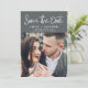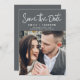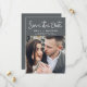 Modern and Elegant Handwritten Script Photo Save the Date Wedding Card. The save the date invitation card includes a chic and stylish typography with a simple and minimalist design on a charcoal grey (grey) background that you can add your customised engagement photograph picture to.