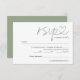 Simple and modern dusty sage green, typography heart in calligraphy style, serif font with meal choice RSVP card.