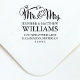 Rustic chic wedding return address design features bold and playful handwritten Mr and Mrs calligraphy script typography and scroll design accents. Personalise the elegant custom monogram with your married last name and return address text for your casual wedding day.