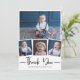 Our Modern Handwritten Thank You Photo Collage is a heartfelt and stylish way to express your gratitude while celebrating your little one! Featuring a beautifully arranged collage of four custom baby photos, this design highlights one large horizontal image at the top, capturing your baby's sweetest moment, with three vertical photos above it for a charming and balanced layout. A bold, modern handwritten script elegantly spells out “Thank You” above the collage, adding a warm and personal touch. Just above, your baby’s name and birth date are delicately written in stylish lettering, making this keepsake even more special.