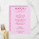 A unique retro mint green modern handwritten pink and red wedding dinner menu. Which features chic template design of boho vintage pink background and red magenta hand written text layout. Perfect and matching with the whole suite.