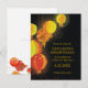 Chic, sassy hanging paper lanterns in shades of yellow, orange & red + mod grey & red swirls + black background illustrated on custom Wedding Save the Date Postcards. Ideal for a DESTINATION WEDDING IN ASIA or EVENING LANTERN GARDEN WEDDING. ((You can find the matching wedding essentials & favours in this store, Bridal Heaven. Contact ujean4791@gmail.com for custom work and/or coordinating wedding stationery.))