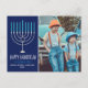 Modern Happy Hanukkah Family Photo Blue Postcard