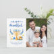 Send your Wishes with this Holiday Photo card that feature a Stunning Hanukkah Script and Jewish Holiday Symbols to highlight your greeting message.