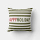 Modern Happy Holidays Green Stripes Holiday Pillow