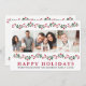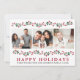 Modern Happy Holidays 3 Photo Holiday Card includes winter botanical greenery and holly berries.
