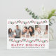 Modern Happy Holidays Greenery Berries 3 Photo Holiday Card