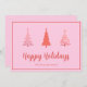 Elegant Happy Holidays Business Pink Card. Featuring modern minimalist Christmas trees. Flit the card to customise the text. Also available as digital download.