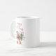 Christmas holiday season white mug featuring the greeting HAPPY HOLIDAYS in modern calligraphy script typography accented with a watercolor red bow and holly. ASSISTANCE: For help with design modification or personalisation, resizing, transferring the design to another product or if you would like coordinating items, contact the designer BEFORE ORDERING via the Zazzle Chat MESSAGE tab or email makeitaboutyoustore@gmail.com.