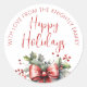Modern Happy Holidays Script Red Bow From Name Classic Round Sticker