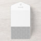 This modern, clean and unique holiday greeting card features four square photo templates with thin borders, editable text fields, and full background photo with border. All graphics and text fields are customizable. The panels feature additional text fields, floral graphics and a bonus tearaway photo.