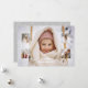 This modern, clean and unique holiday greeting card features four square photo templates with thin borders, editable text fields, and full background photo with border. All graphics and text fields are customizable. The back features an elegant line drawn holiday botanical pattern with customizable background color.