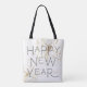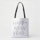 A beautiful design with the message 'Happy New Year' in beautiful grey text for a stylish New Year Modern Happy New Year Custom Gift ToTe Bag.