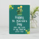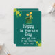 Send heartfelt holiday wishes with this elegant St. Patrick's Day greeting card. Set against a deep teal background with vibrant lime shamrock accents, the design features a festive green top hat with golden coins floating above, alongside the message, "May the Luck of the Irish be with you!" This high-quality card is a thoughtful way to connect with friends and family this March 17th.