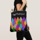 Step into the spotlight with this festive, colourful, and sparkly glittered tote bag, adorned with a vibrant modern harlequin pattern. This eye-catching design ensures you'll be the queen of the Mardi Gras.
