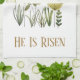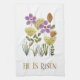 Modern He Is Risen Easter Floral Tea Towel
