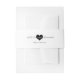 Modern heart wedding invitation belly band. Black and white. Customisable. Part of a wedding collection.