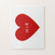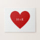 Create your own Modern Minimalist Couples Monogram with Red Heart Jigsaw Puzzle - Customise the template with your heart or background colour, monogram or text - with love.