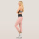 Modern pink and white heart pattern and editable pink text on coral pink Capri Leggings. Pink is the colour of the Season!