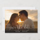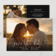 This elegant heart script photo save the date card features your photo and a script save the date above your names, date and venue. The reverse features an additional photo, message, and wedding website QR code on a black background. Designed by Thisisnotme©