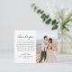 2 photo wedding thank you postcard features a modern and minimal design with wedding photos on the front and back of the card, and simply stylish heart script "thank you" lettering. Card includes a custom thank you message from the newlywed couple that can be personalised on the front. Note, the black and white colour scheme can be modified.