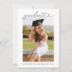 This minimalist graduation invitation is a front and back design that features heart calligraphy, 2 photos a back invitation.
