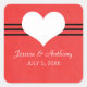 Sweet and charming Modern Heart Wedding Stickers featuring a red background and a cute heart and striped border. These simple yet bold stickers are perfect for a very modern and contemporary wedding. Easy to customise, simply add your wedding details to make this design your own! Click on "Customise" to find additional personalisation options.