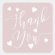 Modern hearts thank you script order dusty pink square sticker