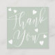 Modern minimalist and stylish white and pastel sage green business order thank you brush script font with hearts. Add your social media. With an elegant signature script font, all the colours are editable , add your logo.
