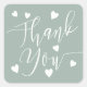 Modern hearts thank you script order sage green square sticker
