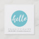 MODERN HELLO SCRIPT hand drawn bold spot turquoise Square Business Card