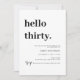 This minimalist typography 30th birthday party invitation is perfect for a modern birthday party. The simple design features classic minimalist black and white typography with a modern feel. Customisable in any colour. Keep the design minimal and elegant, as is, or personalise it by adding your own graphics and artwork. For more advanced customisation of this design, e.g. changing layout, font or text size please click the "CUSTOMIZE" button above. Please contact me for any questions!