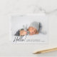 This modern and elegant birth announcement postcard features with script hello and baby full name and birth stats. There is space on the back of the postcard to write custom message or delete the text for handwritten message.