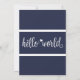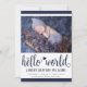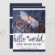 A navy hand-lettered hello world photo birth announcement postcard to welcome your new arrival. Send out this card to friends and family so they can see your new bundle of joy.