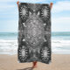 Transform your beach days with the modern hexa black ursidae mandala art beach towel. This unique design blends circles and hexagons to create a sketch of a bear surrounded by flowers, inspired by Hindu mandala art. The black and white colour scheme symbolises harmony with nature. Get ready to make a splash with this vibrant, machine-washable towel for your next outdoor adventure.