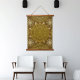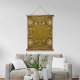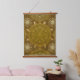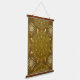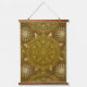 Merging Hindu and Buddhist mandala essences with a contemporary twist, this golden tapestry features a bear surrounded by florals, printed on soft polyester with a rustic wooden frame for a harmonious natural decor.