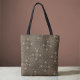 Inspired by Hindu mandala and Buddhist influences, this unique design blends circles and hexagons to form a sketch of a bear surrounded by flowers. The sepia golden colour exudes modernity while conveying a sense of tranquillity, openness, and clarity. Elevate your shopping experience with this earth-friendly and stylish tote featuring a sturdy brushed polyester exterior, cotton web handles, and a black laminated lining for extra support. Shop now for a tote that combines art and functionality!