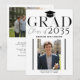 Trendy bold grad typography class of year high school graduate photo announcement card template. Easy to personalize with custom 2 photos and your text on both sides!