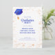 Simple mathematics high school graduation invitation with a pattern of math formulas and equations in yellow colours. Complementing the design there is a navy blue graduation hat. Illustrated and designed by Patricia Alvarez.