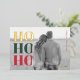 Spread festive cheer with this modern holiday photo card featuring bold “HO HO HO” typography in alternating red and green letters. The minimalist design highlights your favorite photo, complemented by a red polka dot back pattern for a playful seasonal touch. customizable text on the side allows you to include your family names or a special message. Perfect for sharing joyful holiday wishes in a sleek, contemporary style.