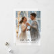 Share the magic and joy of your first Christmas as newlyweds with this playful “Ho Ho Ho!” holiday card. Featuring a full photo of the bride and groom dancing under twinkle lights, it’s perfect for winter weddings with a fun, modern twist. The bold greeting, soft snowfall, and cheerful mood make this a memorable and stylish way to spread holiday cheer.