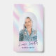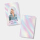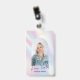 Trendy holographic design photo ID badge with modern script font and arch framed photo. This feminine employee badge with photo features elegant purple and blue gradient background and space for your name or logo. Perfect for aestheticians, nail artists, hair salons, makeup artists and more!